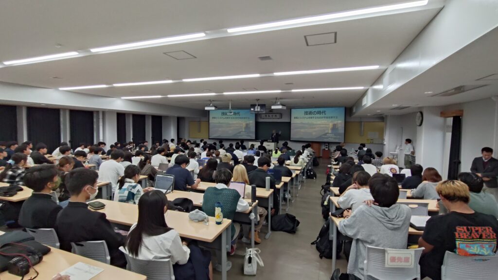 常田所長は、2025年10月20日に岐阜大学において、学生および教職員を対象に「技術の時代――要素とシステムを制するものが宇宙を制する」と題した講演と質疑応答を行いました (写真)。当日は多くの参加者が集まり、活発な意見交換が行われました。