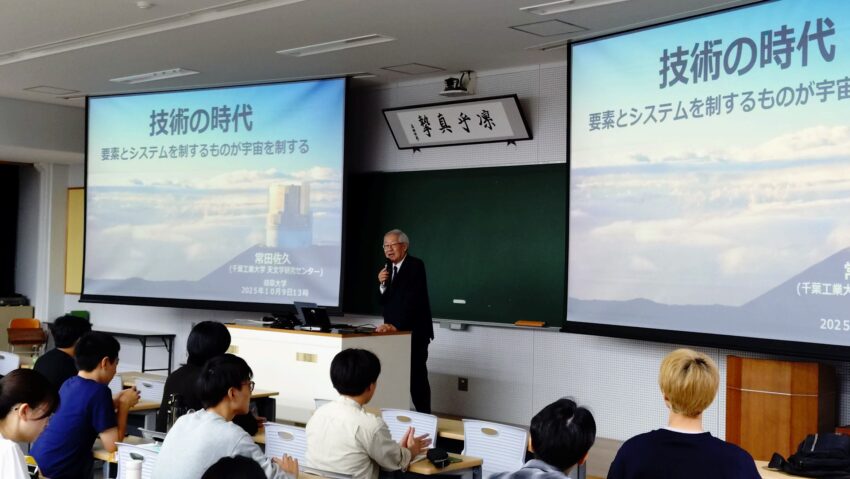 常田所長は、2025年10月20日に岐阜大学において、学生および教職員を対象に「技術の時代――要素とシステムを制するものが宇宙を制する」と題した講演と質疑応答を行いました (写真)。当日は多くの参加者が集まり、活発な意見交換が行われました。