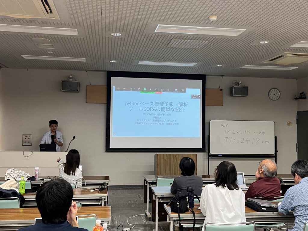 観測前には、だて歴史の杜カルチャーセンターにおいて第五回掩蔽観測ワークショップを開催しました(写真2)。掩蔽観測に関連する研究課題や技術について議論を交わし、夜の観測キャンペーンに向けた最終打ち合わせを行いました。